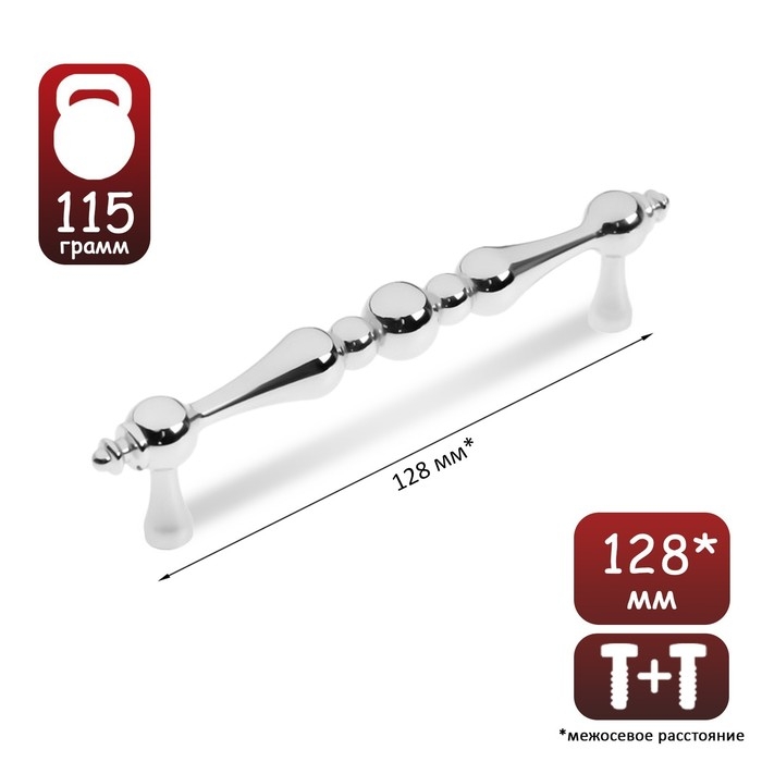 Ручка скоба ТУНДРА, м/о 128 мм, цвет хром