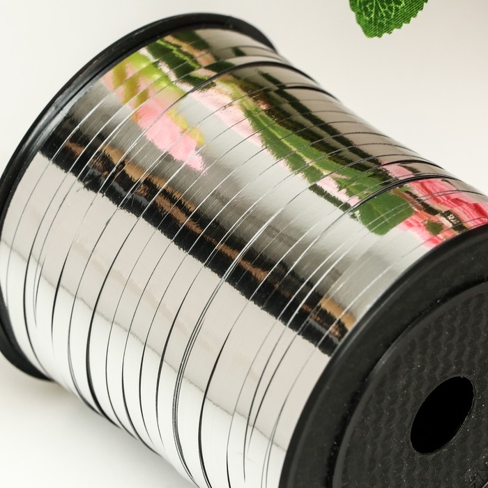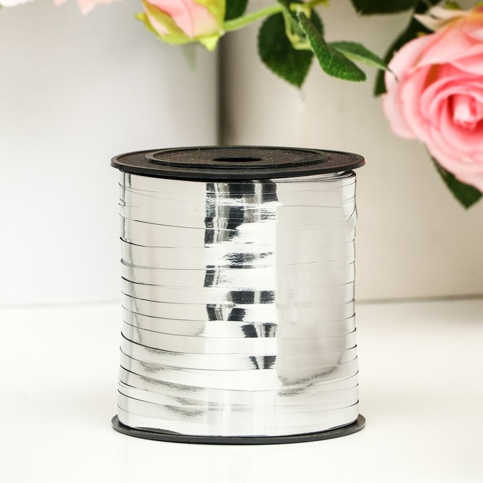 Лента для декора и подарков, серебряный, металлизированная, 0,5 см х 250 м