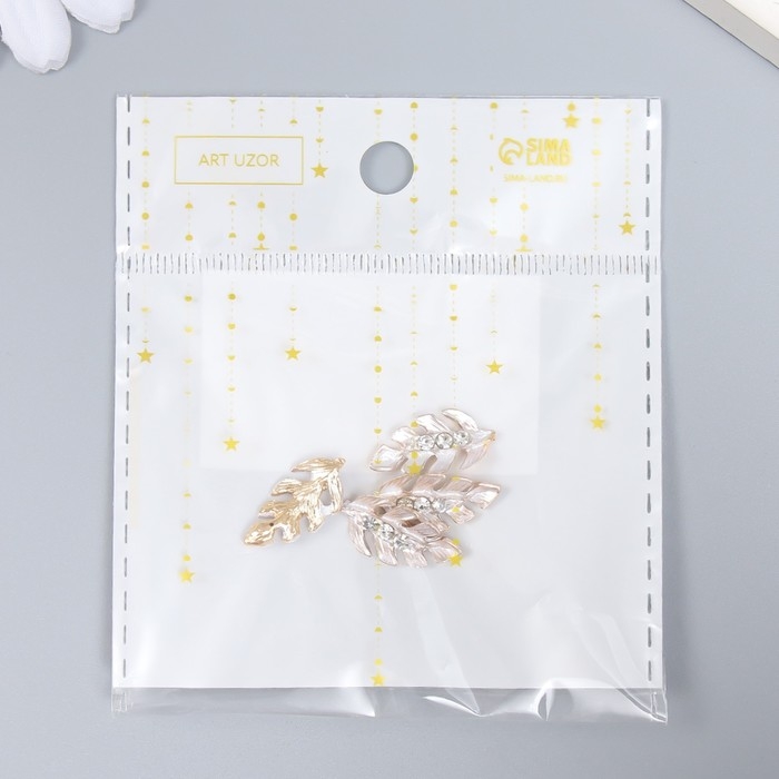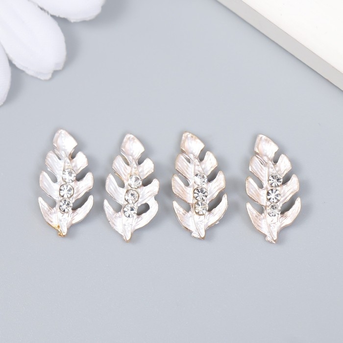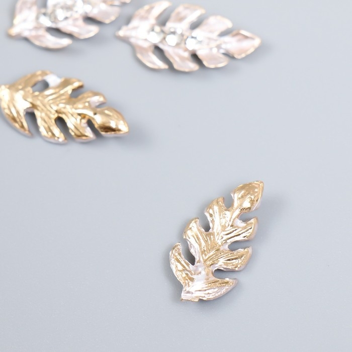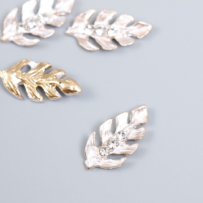 Декор для творчества металл "Листик с капельками" стразы, золото набор 4 шт 2х1 см