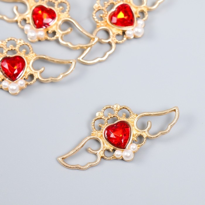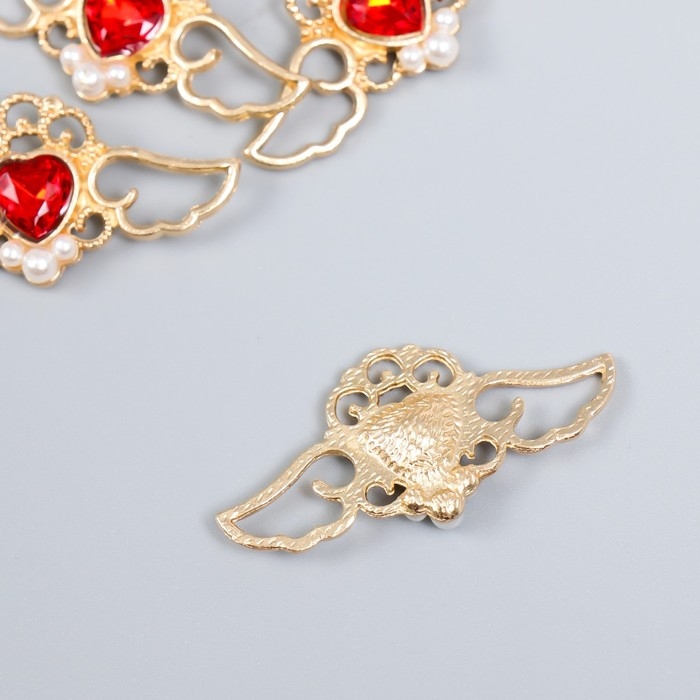 Декор для творчества металл, пластик "Крылатое сердце. Рубин" золото набор 5 шт 4х2 см
