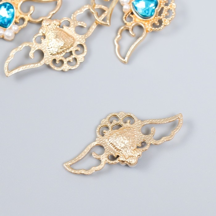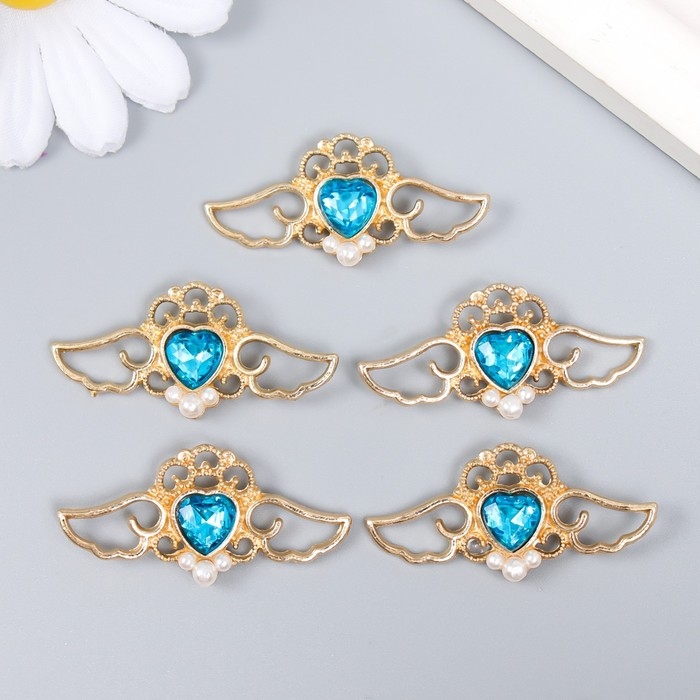 Декор для творчества металл, пластик "Крылатое сердце. Топаз" золото набор 5 шт 4х2 см