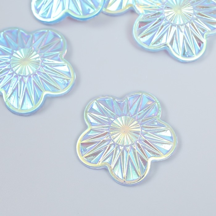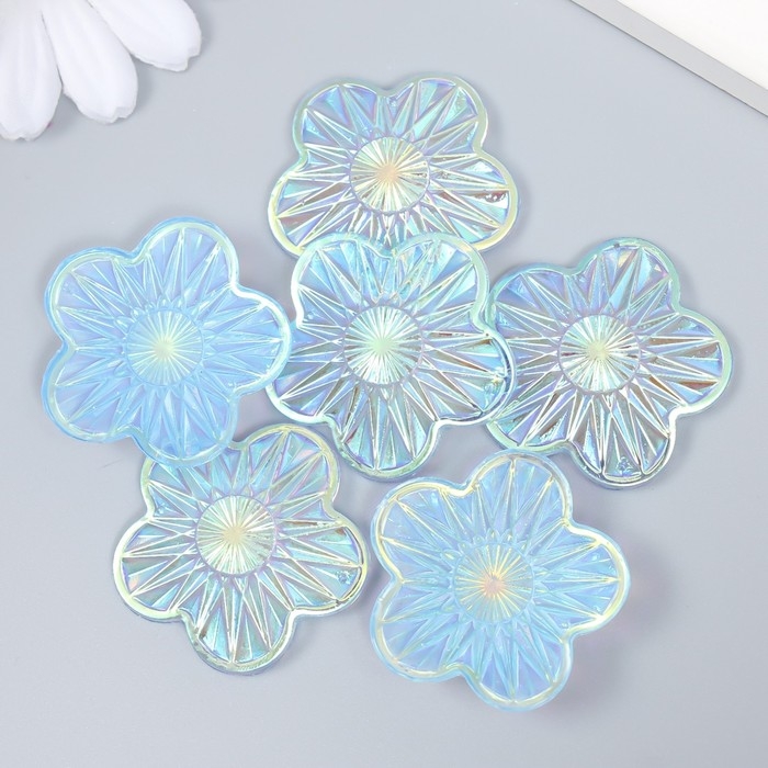 Декор для творчества пластик "Цветок" голография перламутр набор 6 шт 3,5х3,5 см