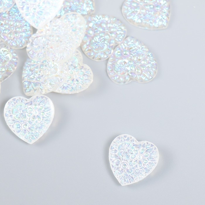 Декор для творчества пластик "Сердце" голография белый набор 20 шт 1,6х1,6 см