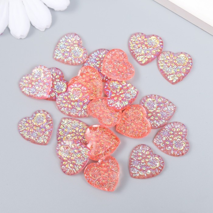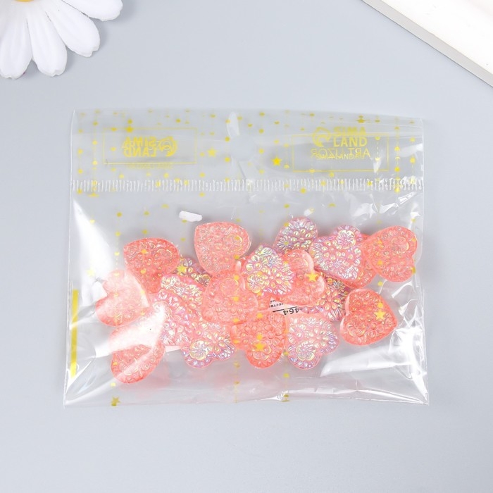 Декор для творчества пластик "Сердце" голография розовый набор 20 шт 1,6х1,6 см