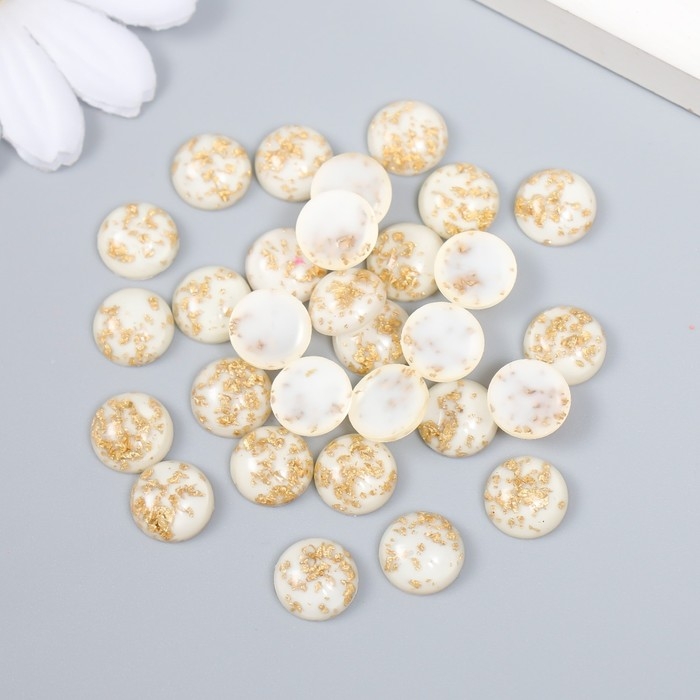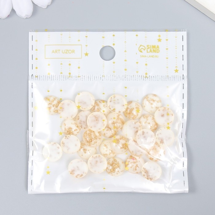Декор для творчества пластик "Кружок с поталью" белый набор 30 шт 1х1х0,5 см