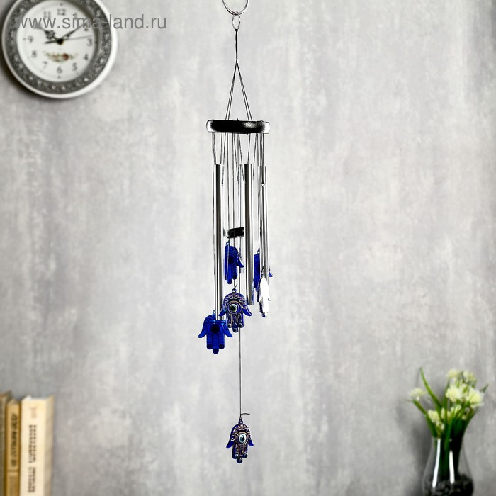 Музыка ветра металл, пластик "Ладонь с талисманом" 5 трубок 6 рук 50х8,5х8,5 см