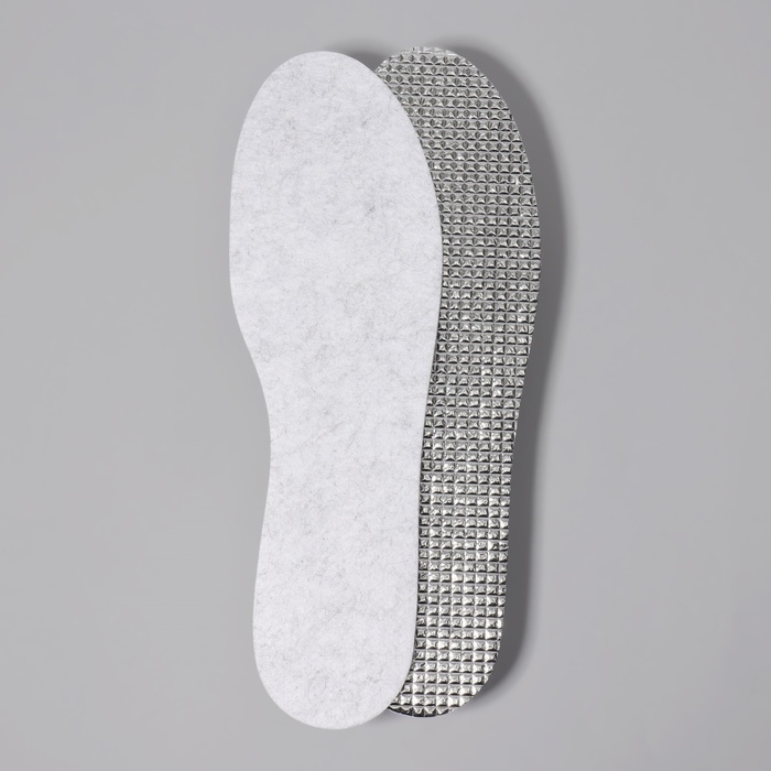 Стельки для обуви, утеплённые, фольгированные, универсальные, р-р RU до 46 (р-р Пр-ля до 45), 29 см, пара, цвет бежевый/серый
