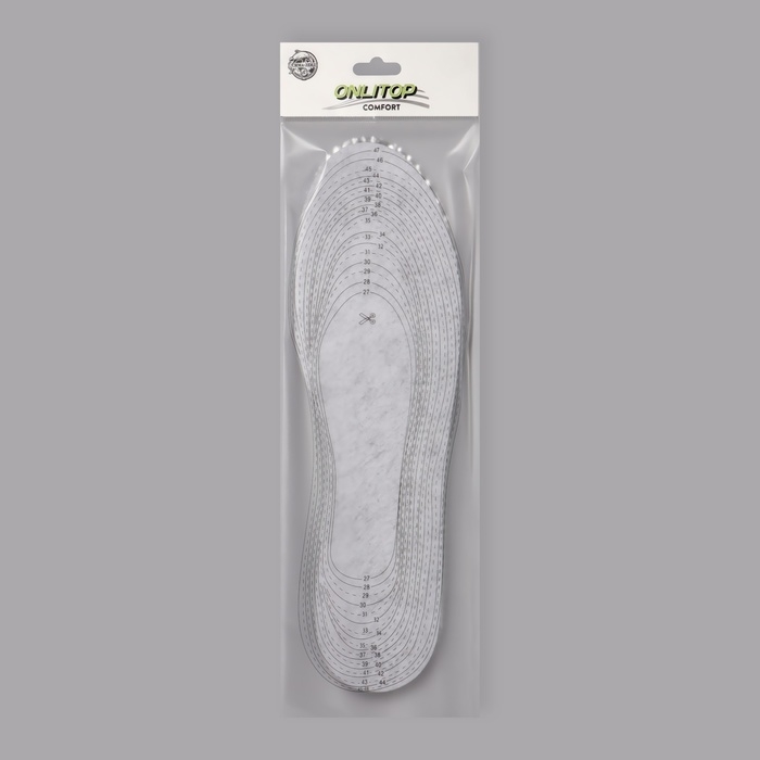 Стельки для обуви, универсальные, дышащие, р-р RU до 45 (р-р Пр-ля до 47), 28,5 см, пара, цвет серый