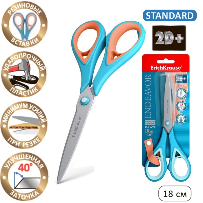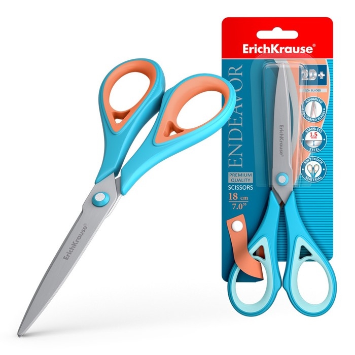 Ножницы ErichKrause Endeavor, 18 см, антискользящие резиновые вставки, улучшенная заточка, блистер, МИКС