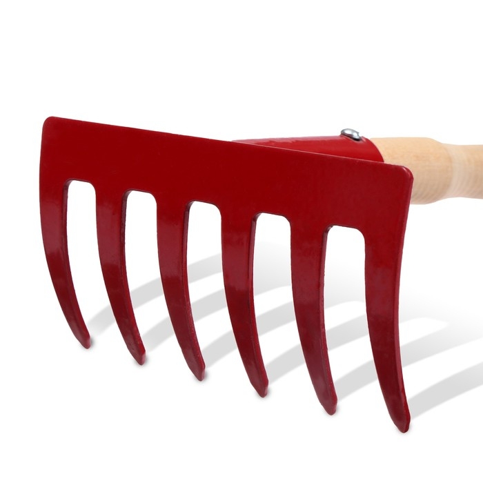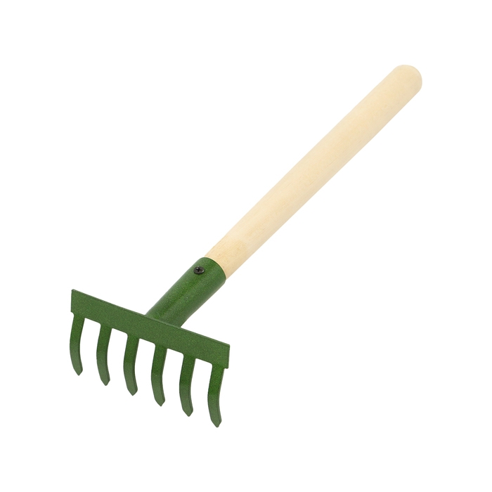 Малые прямые грабли, 6 зубцов, длина 31 см, металл, деревянная ручка