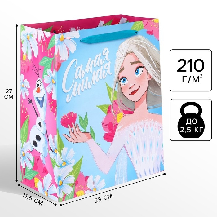 Пакет подарочный "Самая милая" 23х27х11.5 см, упаковка, Холодное сердце