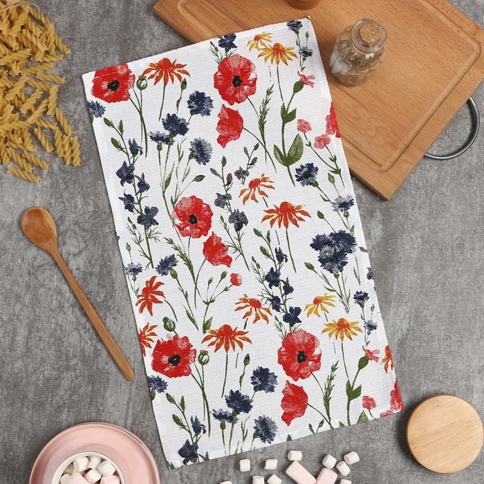 Полотенце Доляна "Луговые цветы" 28х46 см, 100% хлопок, вафля 160 г/м2