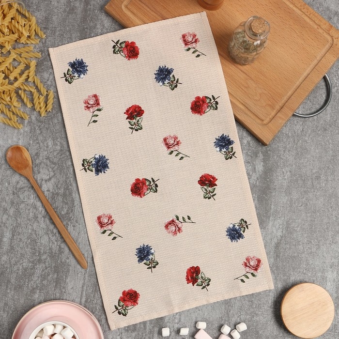 Полотенце Доляна "Цветочки" 28х46 см, 100% хлопок, вафля 160 г/м2