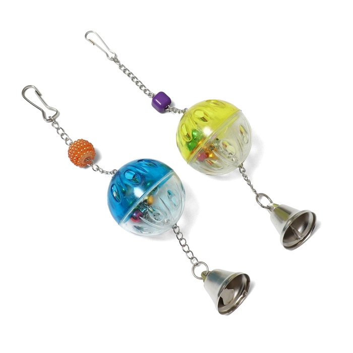 Игрушка для птиц "Шарик на цепочке с колокольчиком", d шара 4.4 см, микс цветов