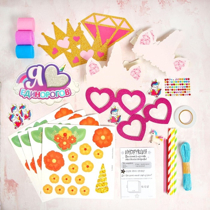 Набор для творчества «Моя вечеринка. Мы единороги», в пакете, изготовление в стиле единорога: корон, гирлянды, фотобутафории