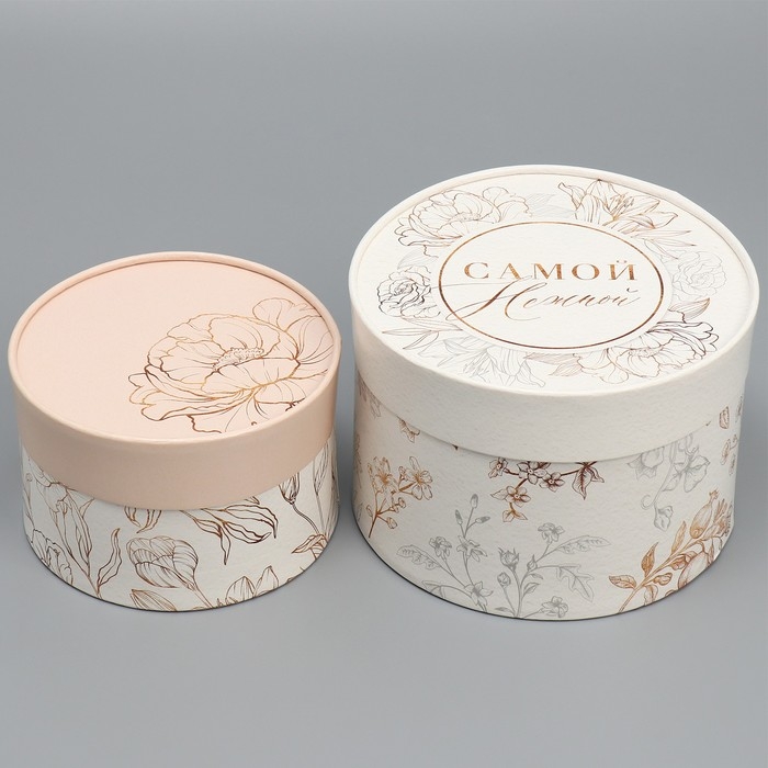 Набор шляпных коробок 2 в 1, упаковка подарочная, «Нежность», 16 х 11.5, 13 х 9 см
