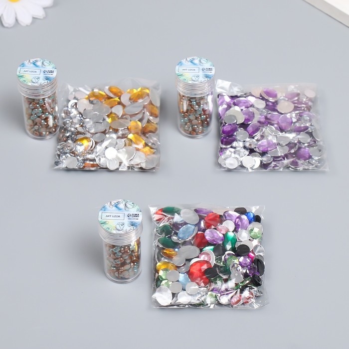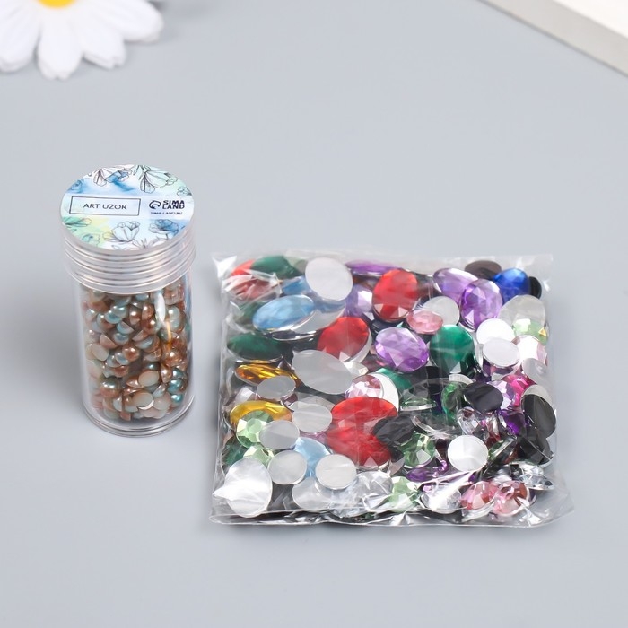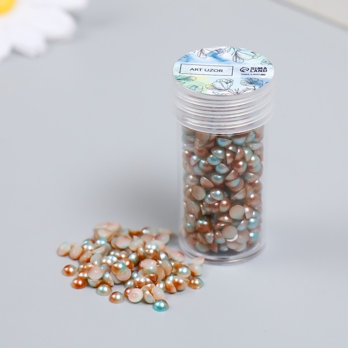 Декор "Полубусины и стразы. Градиент голубой крем" d=4 мм 10г 200 шт 5х2,5 см МИКС