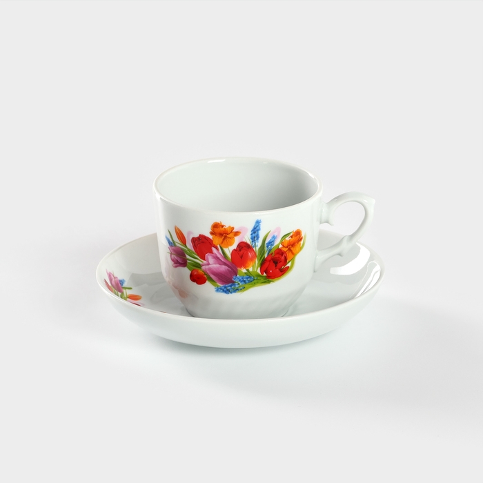 Чайная пара фарфоровая «Майский букет», 250 мл, d=15 см