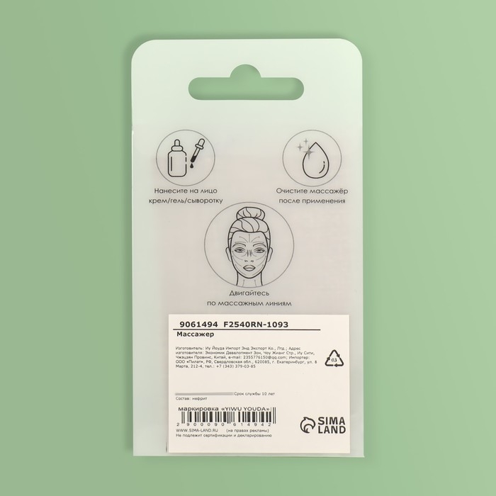 Массажёр гуаша «Лапка», 7 × 4,3 см, в PVC коробке, цвет зелёный
