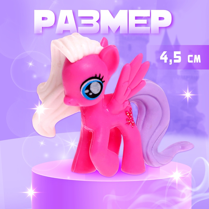 - Высота пони — 4,5 см. Игрушка очень компактная, поэтому её удобно захватить с собой на прогулку, в гости и даже в путешествие!