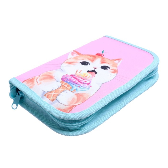 Пенал 1 секция, 130 х 210 х 40 мм, 2 откидные планки, тканевый, Calligrata TOP, Content "Котик"