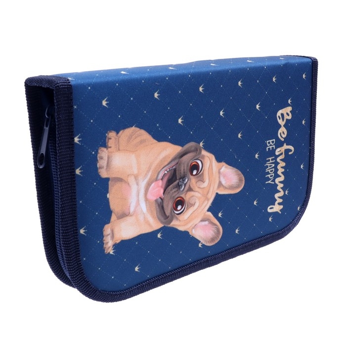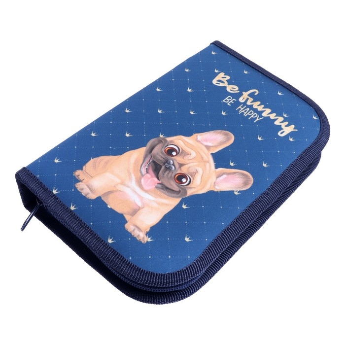 Пенал 1 секция, 130 х 210 х 40 мм, 2 откидные планки, тканевый, Calligrata TOP, Content "Бульдожка"
