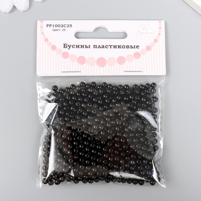 Набор бусин "Рукоделие" пластик, диаметр 4 мм, 25 гр, черный