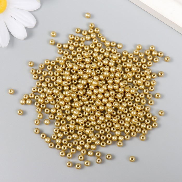 Набор бусин "Рукоделие" пластик, диаметр 4 мм, 25 гр, золотой