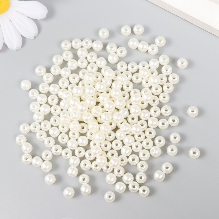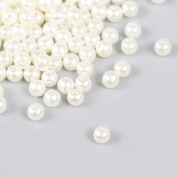 Набор бусин "Рукоделие" пластик, диаметр 6 мм, 25 гр, молочный