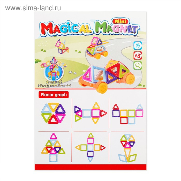 С волшебными магнитами, выполненными в виде геометрических форм, простору для воображения не будет предела. Ребёнок соединит детали и из квадратов и треугольников получит машину, робота, подъёмный кран и многое другое. Иллюстрированная инструкция подскажет идеи для сборки и продемонстрирует принципы конструирования, с ней создание фигурок станет проще и увлекательнее.