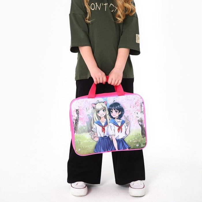 Папка для труда А4 на молнии текстиль 70мм 350 х 270 «1 сентября: Аниме»