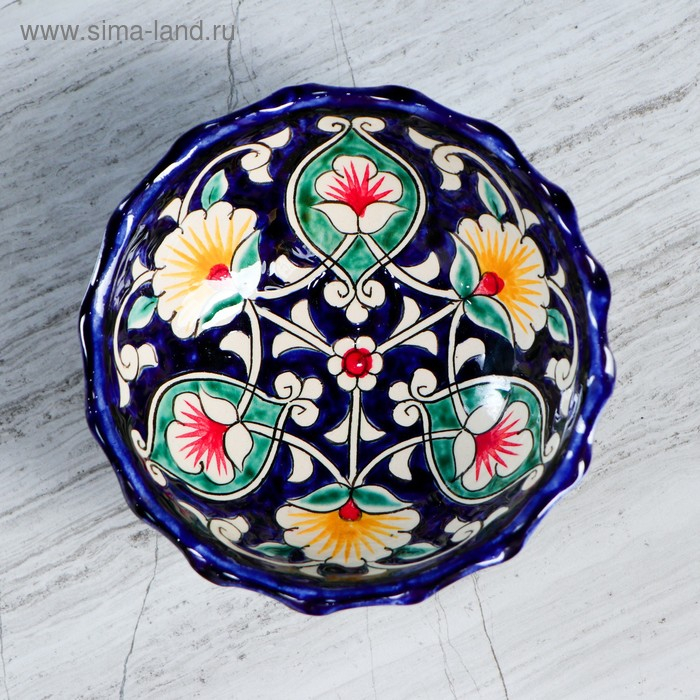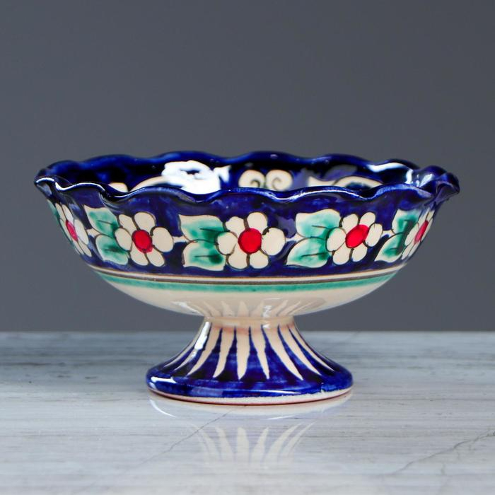 Конфетница Риштанская Керамика "Цветы", 13 см, синяя