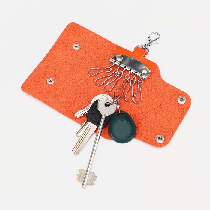 Ключница на кнопках, длина 11 см, 7 карабинов, цвет оранжевый