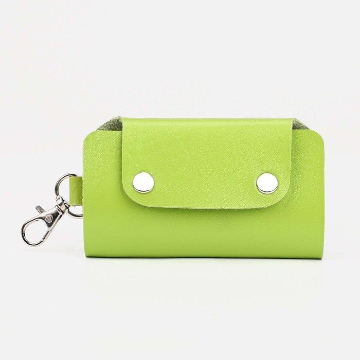 Ключница на кнопках, длина 11 см, 7 карабинов, цвет салатовый