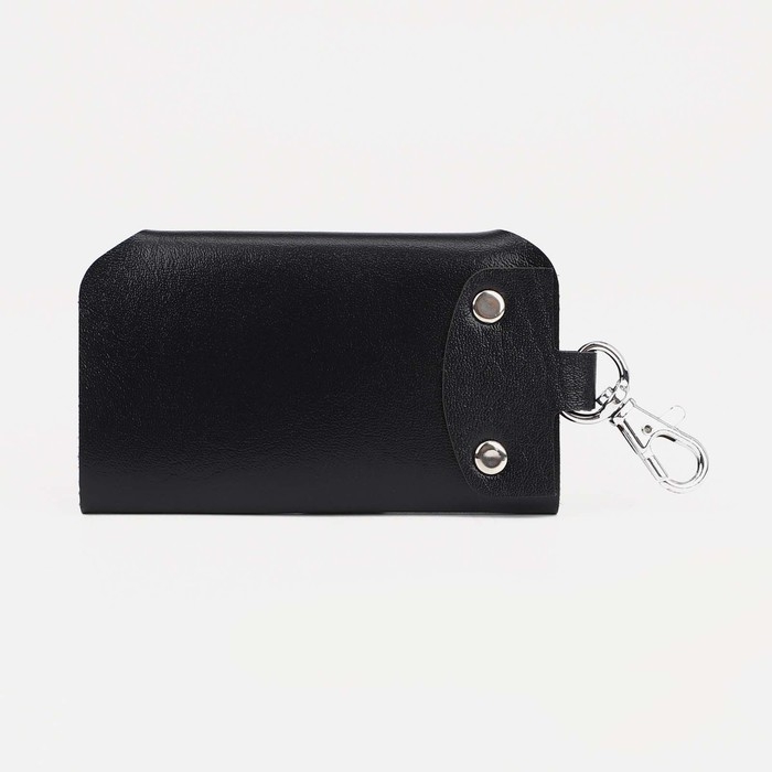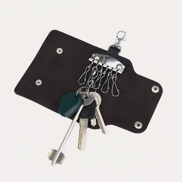 Ключница на кнопках, длина 11 см, 7 карабинов, цвет чёрный