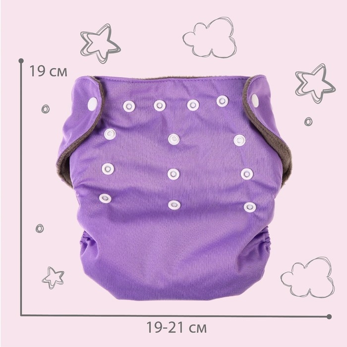Многоразовый подгузник, 3-15 кг, угольно-бамбуковая ткань, цвет фиолетовый, Крошка Я