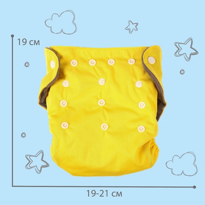 Многоразовый подгузник, 3-15 кг, угольно-бамбуковая ткань, цвет желтый, Крошка Я