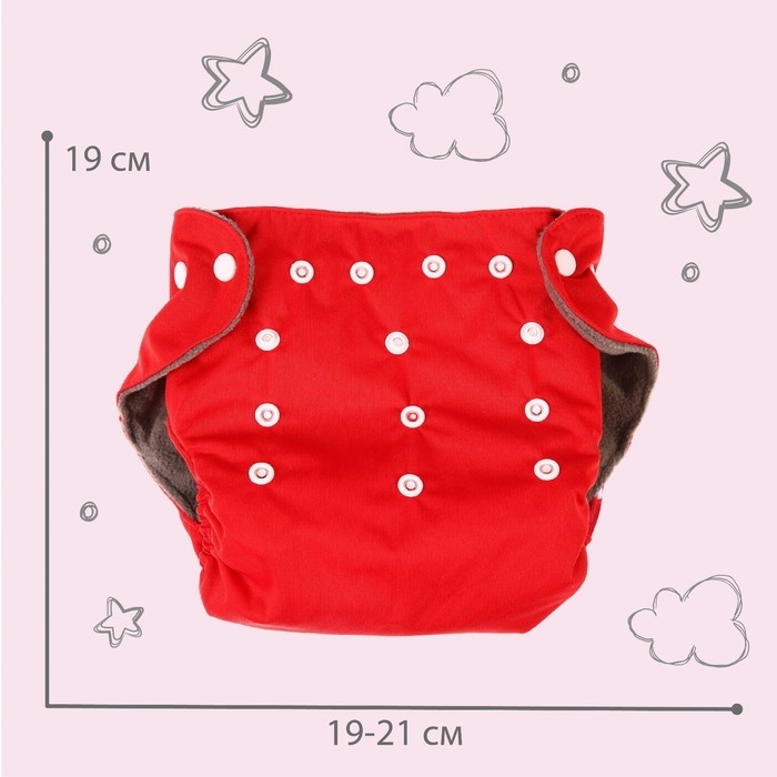 Многоразовый подгузник, 3-15 кг, угольно-бамбуковая ткань, цвет красный, Крошка Я