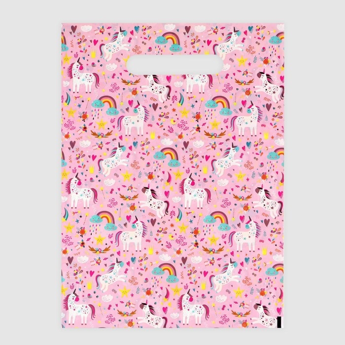 Пакет полиэтиленовый с вырубной ручкой "Единорожки", на розовом, 30х40 см, 50 мкм,набор 5 шт