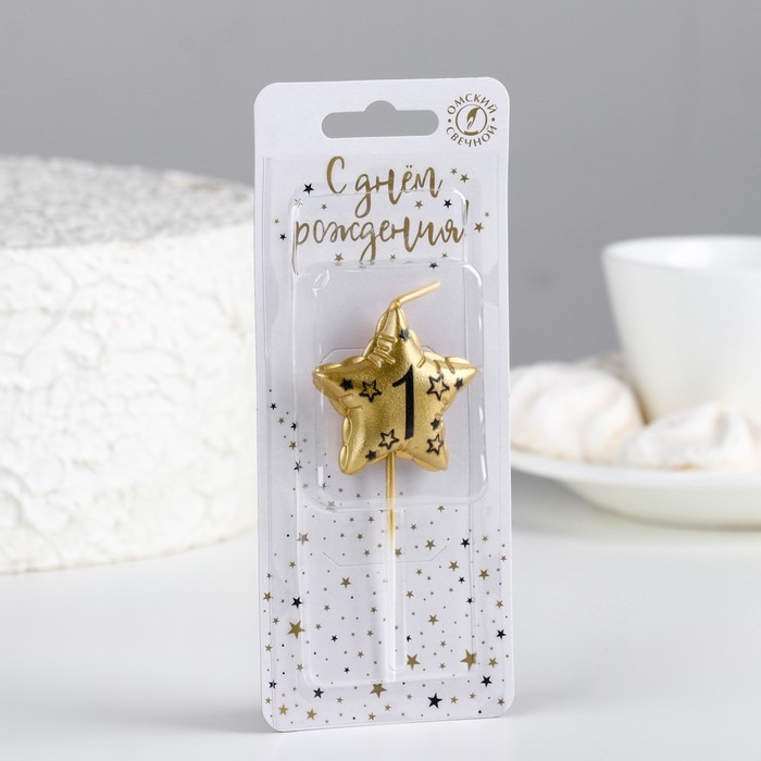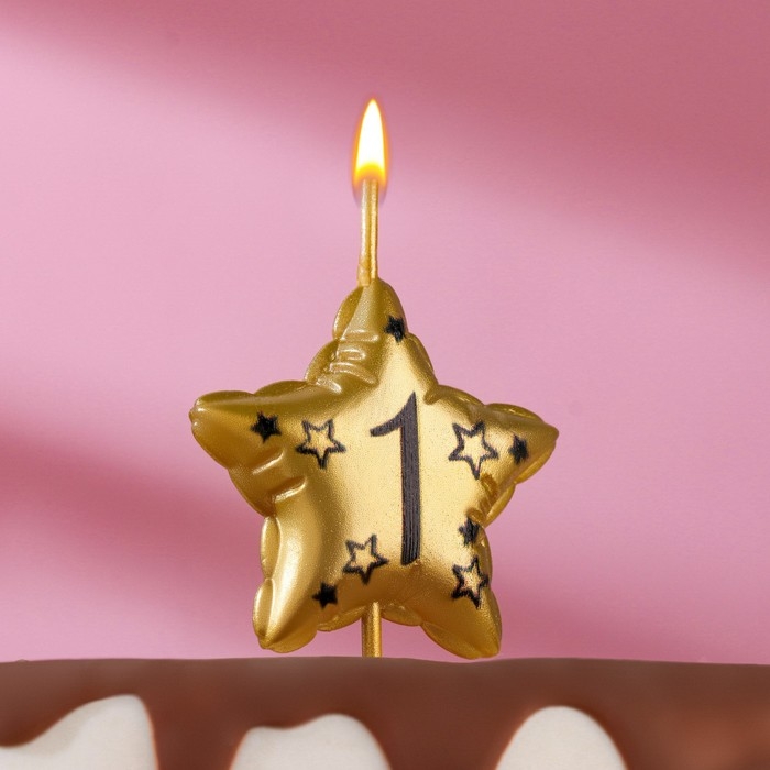 Свеча в торт на шпажке "Воздушная звездочка", цифра 1, 3,5 см, золото