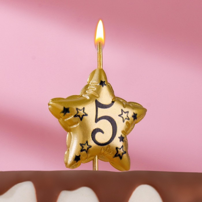 Свеча в торт на шпажке "Воздушная звездочка", цифра 5, 3,5 см, золото