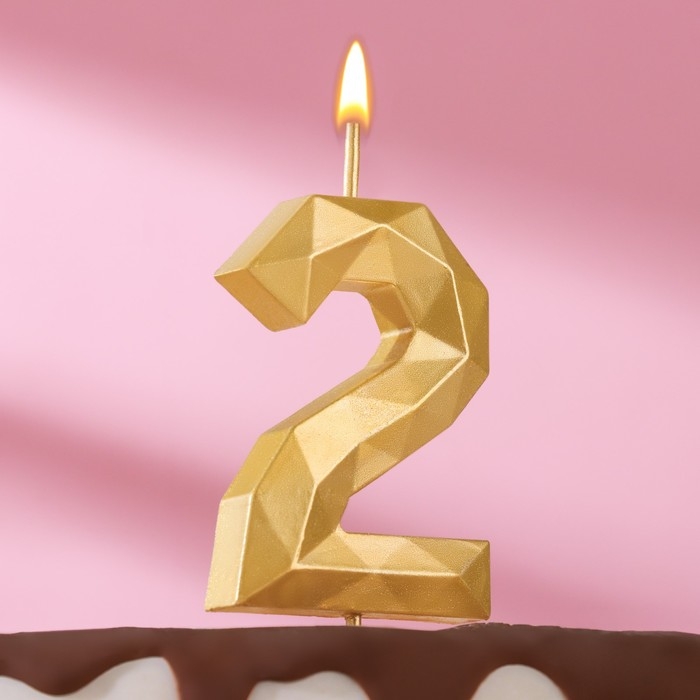 Свеча в торт на шпажке "Многогранник", цифра 2, 7 см, золото