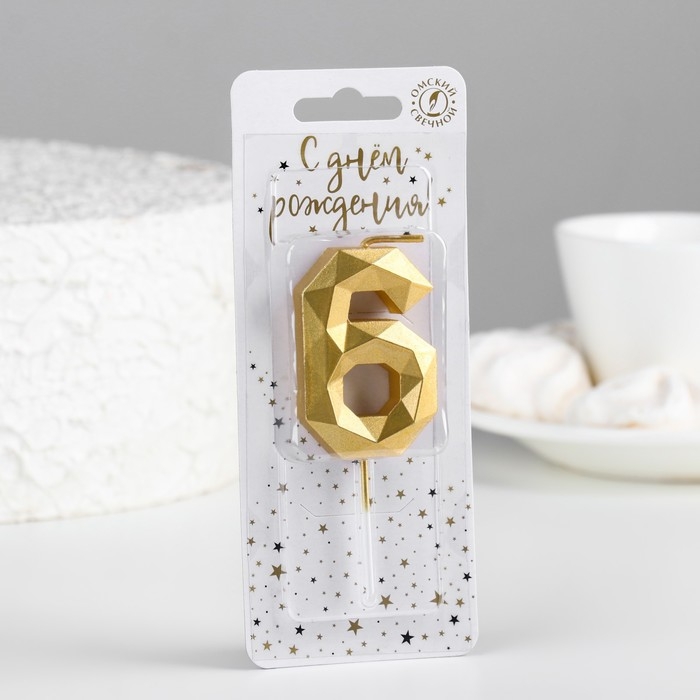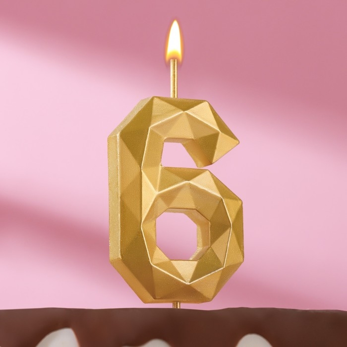 Свеча в торт на шпажке "Многогранник", цифра 6, 7 см, золото