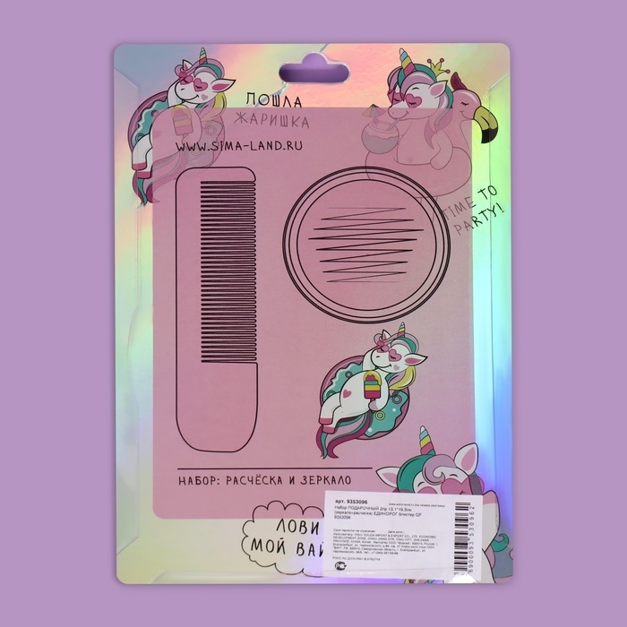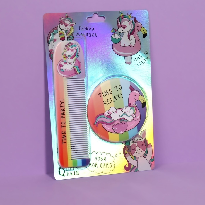 Набор «Единорог», 2 предмета: зеркало, расчёска