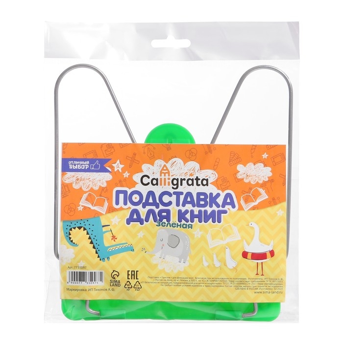 Подставка для книг Calligrata "ПРЕСТИЖ", с пластмассовым упором, европодвес, зелёная