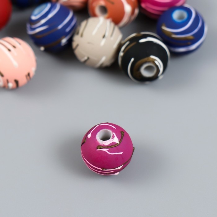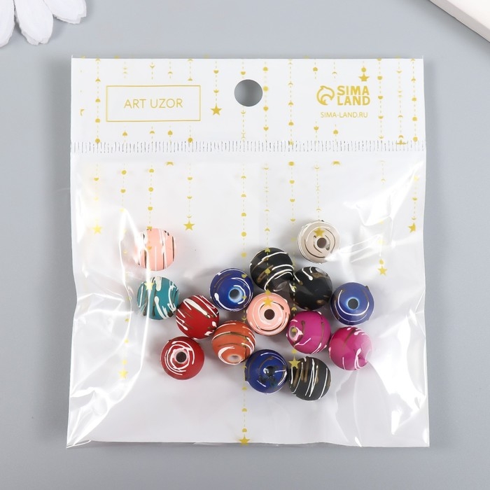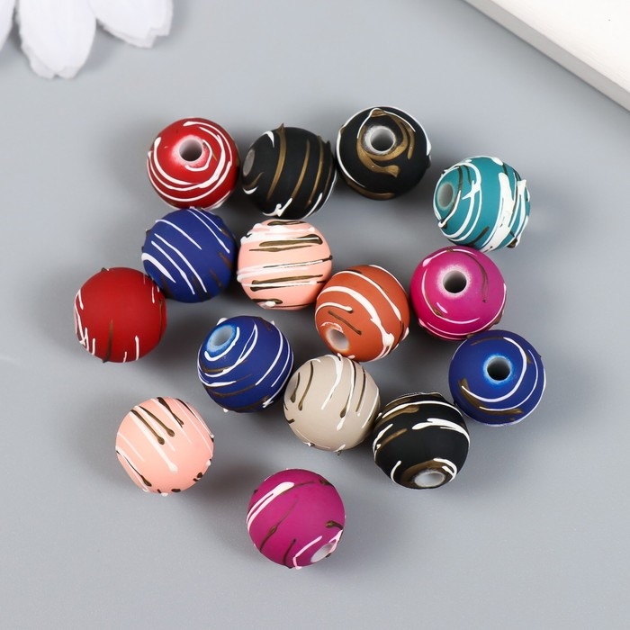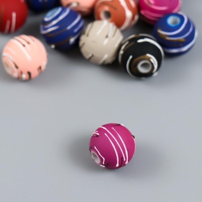 Бусины для творчества пластик "Полосатые шарики" набор 15 шт МИКС 1х1х1 см