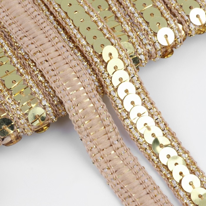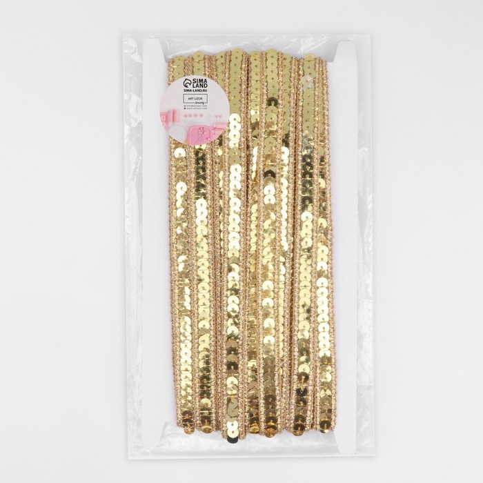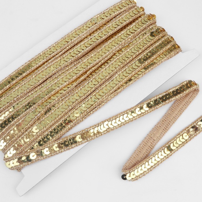 Тесьма декоративная с пайетками, 12 мм, 9 ± 0,5 м, цвет золотой