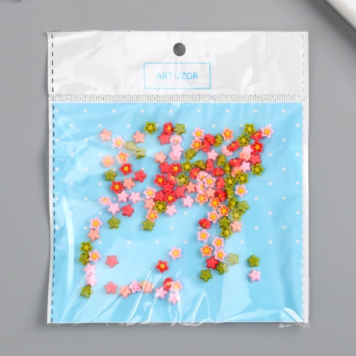 Декор для творчества пластик "Астры цветные" набор 100 шт 0,6х0,6 см