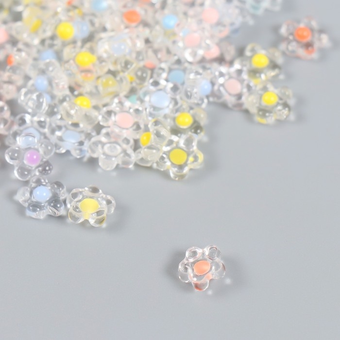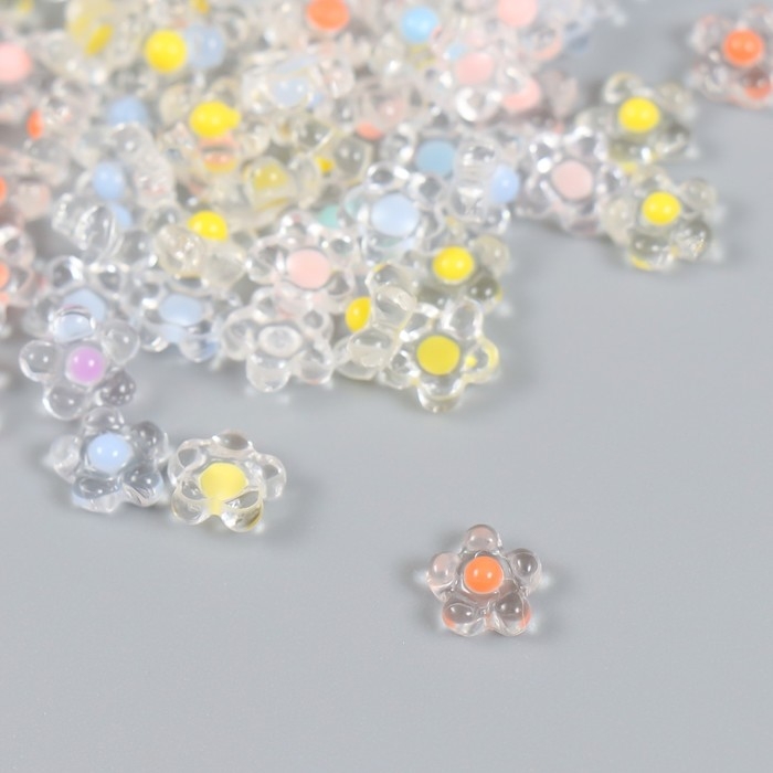 Декор для творчества пластик "Цветок с цветной серединкой" глянец набор 80 шт 0,7х0,7 см