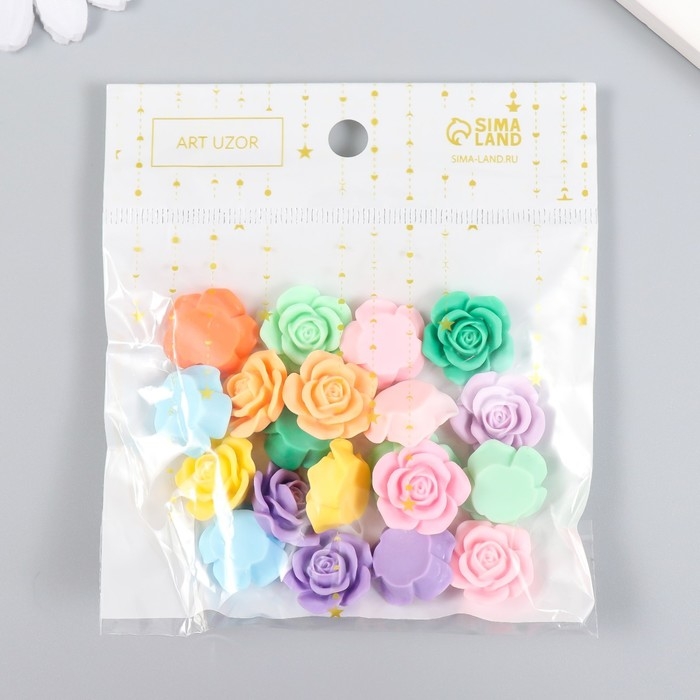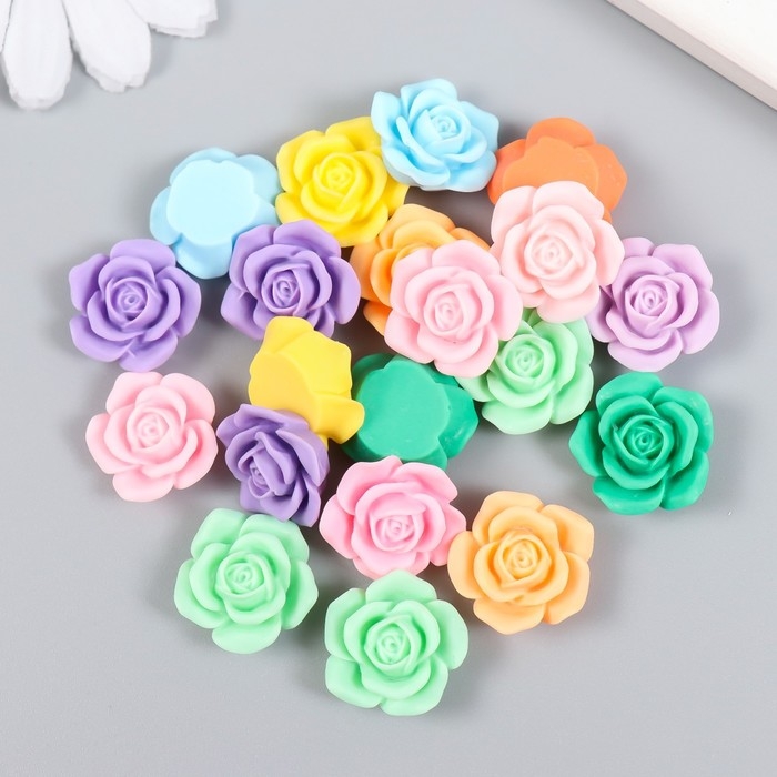 Декор для творчества пластик "Разноцветные розочки" набор 20 шт 1,8х1,8х1,8 см